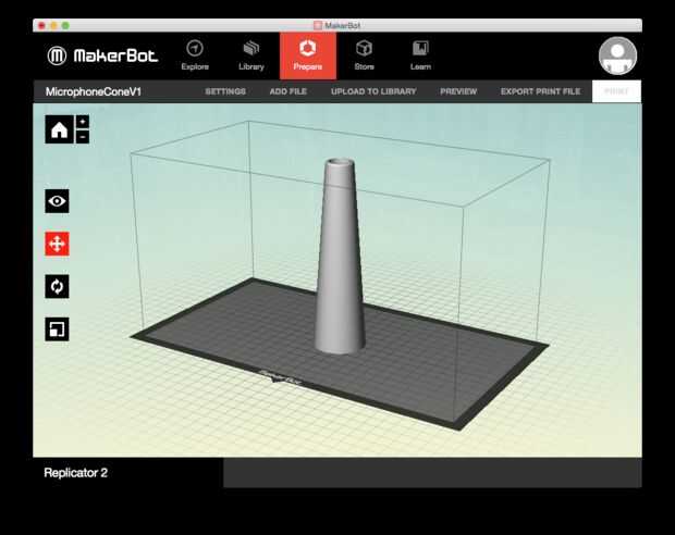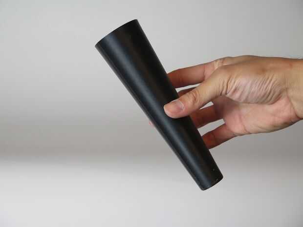 Entonces solía Autodesk fusión 360 modelo el cono, utilizando las funciones de "loft" y "shell". Imprimí el STL exportada en una máquina de Fortus FDM con material ASA negro (Siéntase libre de utilizar cualquier otro sistema de impresora 3D, como un MakerBot Replicator 2). Para su referencia, he subido el archivo STL.