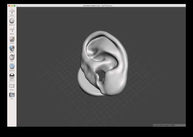He encontrado un modelo de un oído en línea aquí. Utilizando Autodesk fusión 360, diseñé la base redonda que encajaría muy bien con el cono de micrófono en el paso anterior. Entonces solía Autodesk MeshMixer combinan el oído y los modelos de base. Consulte el archivo STL de agregado de referencia.