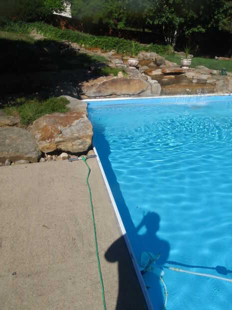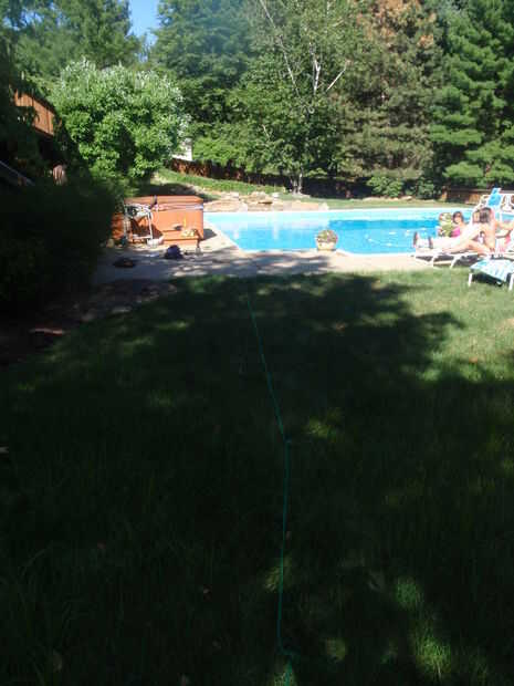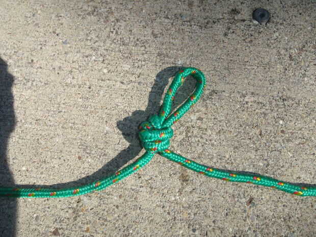 Haga algunos bucles/nudos en el otro extremo de la cuerda, igual deja el borde de la piscina para que agarre en. Uno para cada miembro de su equipo de tracción (en mi caso dos).