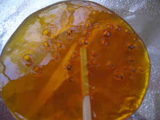 después de dejar su fresca caramelo para al menos 10 minutos listo para quitar la paleta de la hoja. Esto puede ser la parte más difícil. Si tienes no aerosol su pan con aceite de cocina. Todavía puede ser difícil de bajar los dulces pero siempre y cuando usted rocía el papel de cera/aluminio con el aceite de cocina debe ser muy bien.