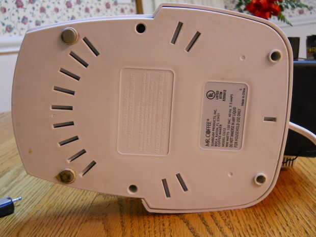 Comenzar quitando la tapa inferior de la cafetera. Hay 6 tornillos que tendrá que quitar. Dos tornillos están debajo de las patas de dos goma. Levante los pies de los agujeros con un pequeño destornillador para acceder a los tornillos.