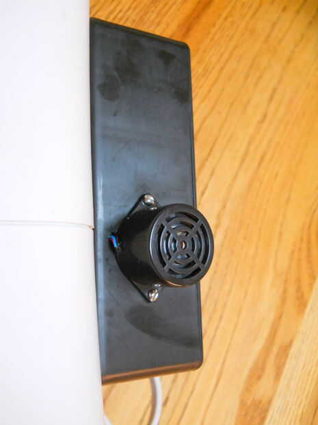 Perforar y montar el timbre de campana a uno de los lados largos de la caja del proyecto y los cables de alimentación dentro de la caja.