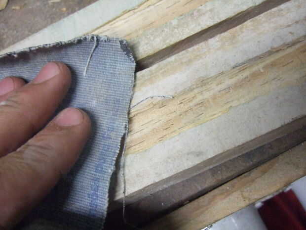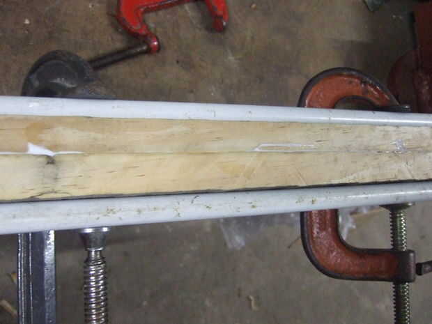 Después de hacer esto en dos partes y arena pegué con pegamento de madera. Me llevó a cabo las dos partes con la ayuda de clips y deje secar por una noche.