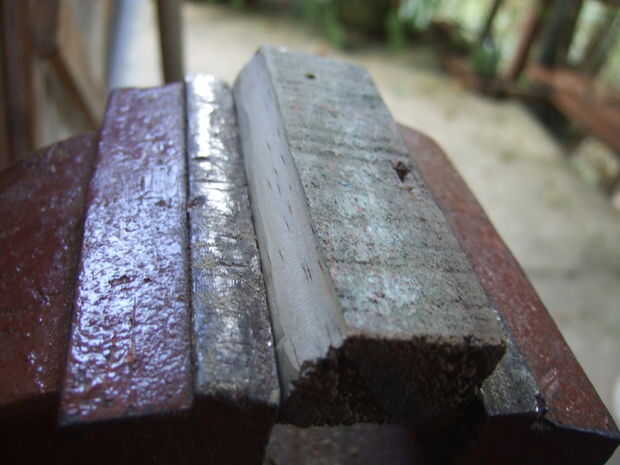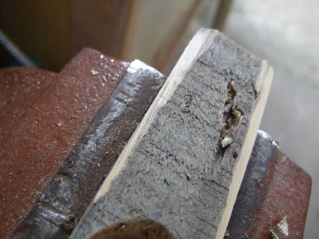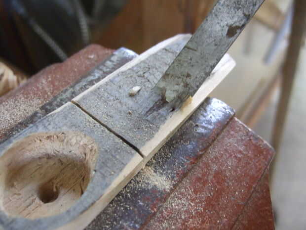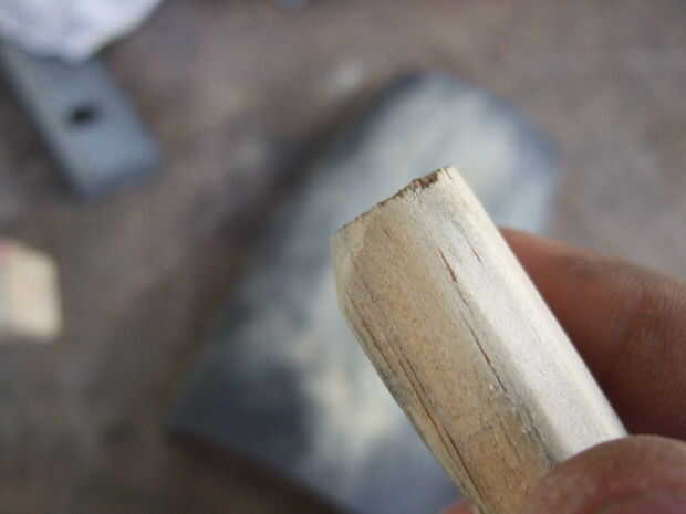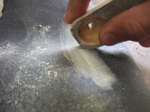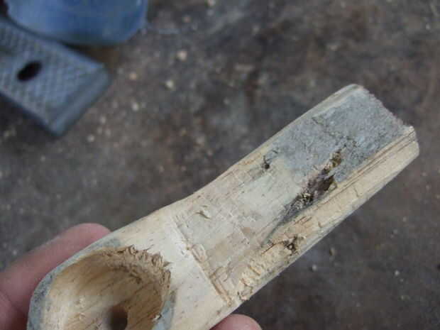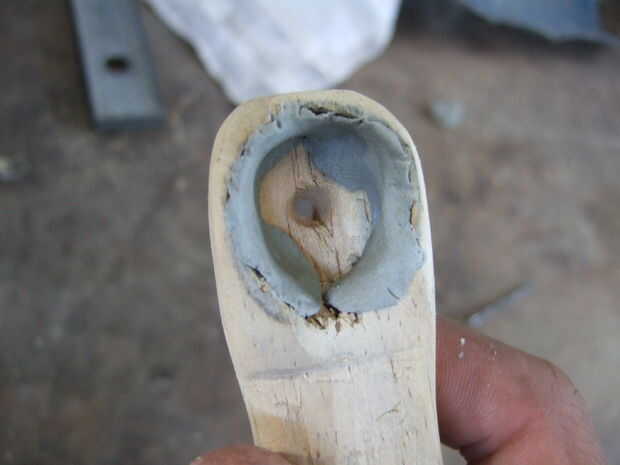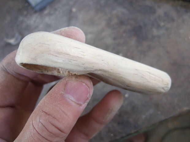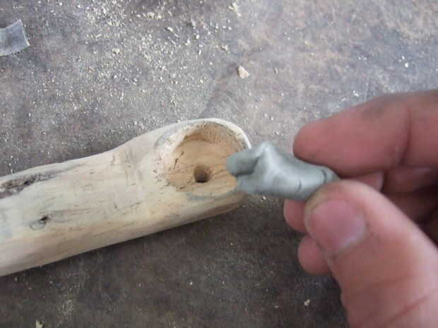 Con una pieza de madera 10 cm x 2 cm x 4 cm, me pegó y moldeado y pegué sobre el cable utilizando Durepoxi.