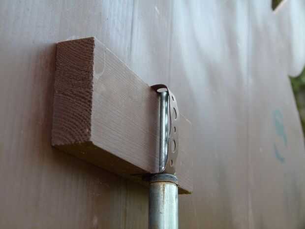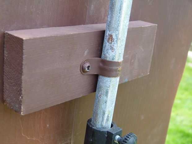 Para la parte inferior, utiliza el soporte de tuberías de fontanería y atornillar para sujetar la parte inferior de la varilla de la tienda. Esto funcionó a la perfección (y debe trabajar perfectamente, incluso si usted necesita hacer algunos ajustes) Sujete firmemente el poste de la tienda así que eso él no puede girar. Si esto no es así, usted no podrá controlar la dirección de su señuelo. En su lugar se fundirá en el viento como una veleta.