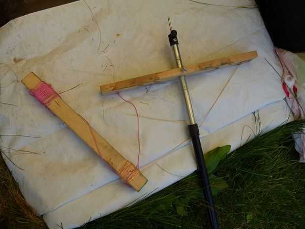 Tomé 1 * 2 y perforó un agujero en él sólo lo suficientemente grande como para recibir el poste de la tienda. Esto es ligeramente más pequeño que el agujero en la base, como mina recibe el poste de la tienda de campaña en el segmento medio, no el segmento inferior.