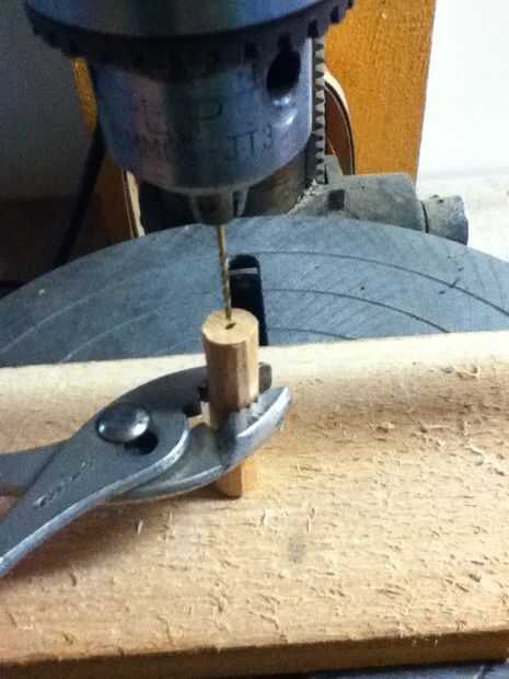 Poner un punto en el centro de cada extremo. Porque no muy largos (Yo utilicé una broca de 1/16) brocas pequeñas probablemente deberás ir a cada lado. Después de la perforación, pegar el alambre a través para asegurarse de que los orificios de conexión.