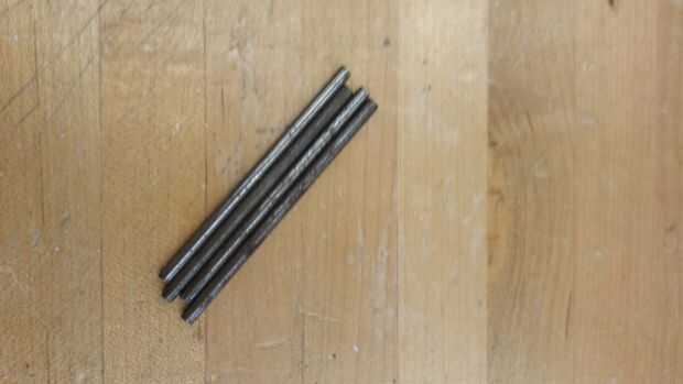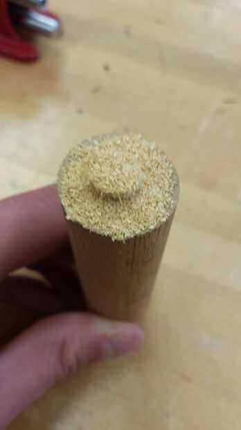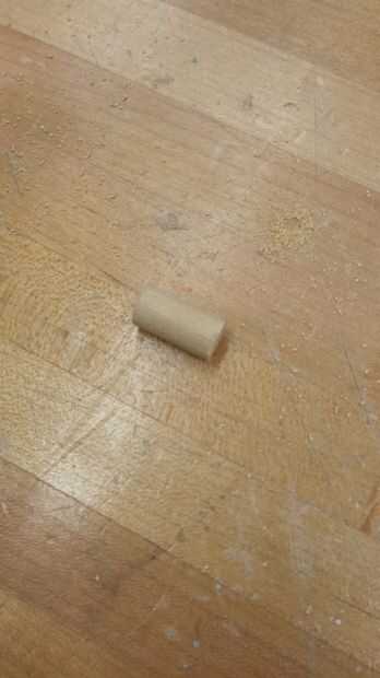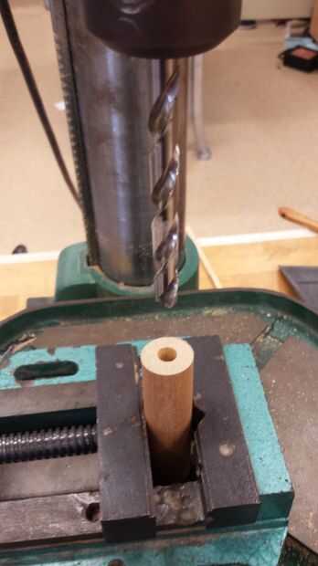 Para empezar, taladre un orificio en la clavija con el diámetro más grande. Esto permitirá que para la inserción de los pesos. Mi peso de elección era pequeños ejes sólidos.