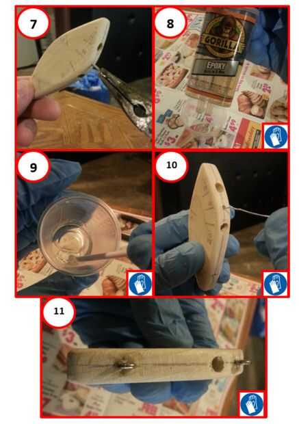 10. utilice el extremo de un clip de papel para aplicar el epoxi en los agujeros de 1/32 pulgadas.