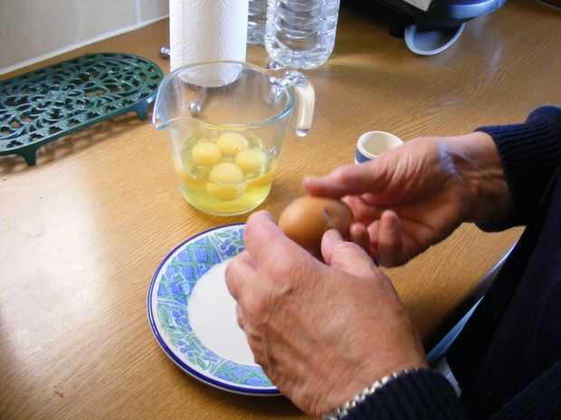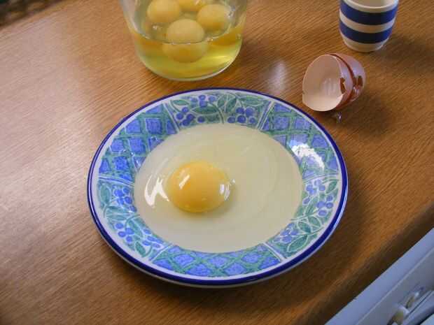 una básica cocina habilidad-separar la yema y el blanco de un huevo. Una habilidad imprescindible y muy fácil de dominar. Se te nota que la cáscara Rajada terriblemente irregular - algunos huevos no realizan bien bajo presión y sin embargo todavía fu