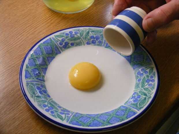 una básica cocina habilidad-separar la yema y el blanco de un huevo. Una habilidad imprescindible y muy fácil de dominar. Se te nota que la cáscara Rajada terriblemente irregular - algunos huevos no realizan bien bajo presión y sin embargo todavía fu