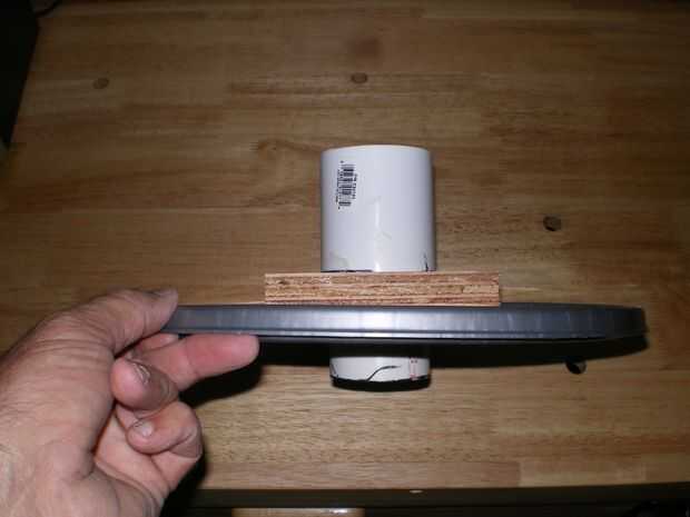 Como se muestra en la foto, cortar un bloque pequeño de madera contrachapada y sujete al centro de la tapa del cubo. Con una sierra o vaivén, corte un agujero a través de la madera contrachapada y la tapa que se ajuste firmemente a otro pedazo de tubo de PVC. Otra vez, sellador de silicona. Uso mucho - es lo que sostiene el tubo en su lugar.