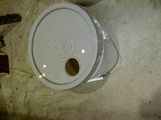 El cubo de la basura es simplemente un cubo con una tapa con un orificio para encajar perfectamente la tubería en la parte inferior del cono.