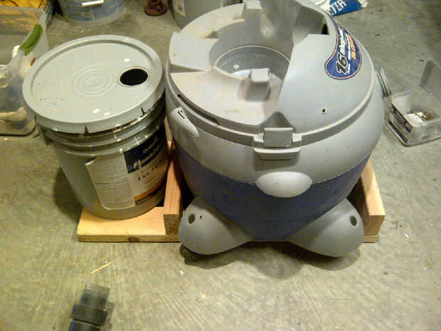 se me ocurrió esto cuando estaba en casa sentado para mis padres y el sótano se empezó a inundar. El original se hizo con una cubeta de 5 galones. He hecho dos desde y encontró que jarros de agua de culligan estilo funcionan mejor. No tengo uno en co