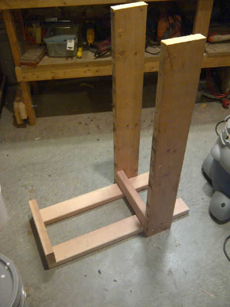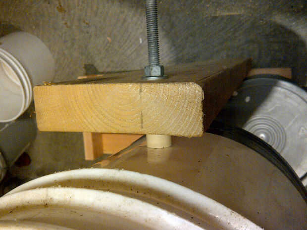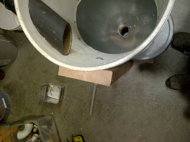 el soporte es simple y solo hecho de retazos.   El cañón es apoyado por los pernos montados a través del cañón a la madera.   He utilizado los pernos de carruaje desde la cabeza es más suave y redondeada para mantener el flujo de aire suave.   El espaciador entre la madera y el cañón es un tubo de 3/4 CPVC 1'' de largo.