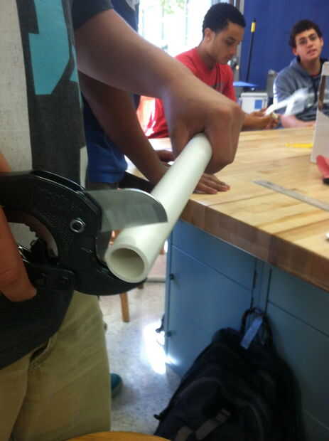 Corte de los polos de pvc para dos postes soporte de 18 pulgadas de alto y dos postes de 6 pulgadas y un poste de 7 pulgadas