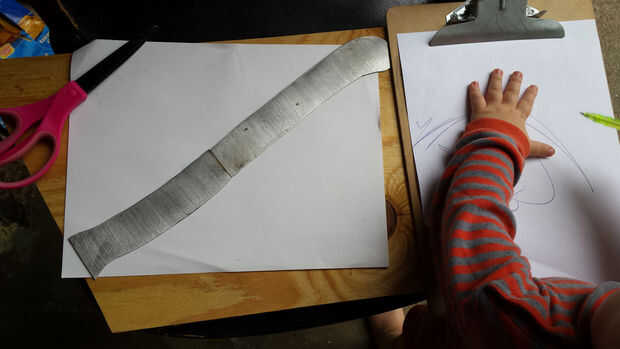 Para hacer las cosas fácil, tiene una toma 2 año de edad sobre su trabajo del espacio (como se verá en una foto de arriba) y luego darse cuenta de que su mango no encaja en el papel seleccionado para su manija imitan para arriba. Juro suavemente bajo su aliento. Mover a otro lugar y utilice una tira de cartulina en su lugar.