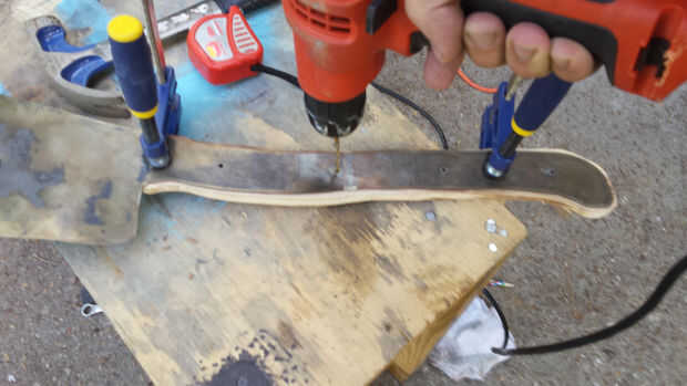 Los orificios de la espiga se utiliza para marcar los agujeros en las escalas de la manija y entonces perforado para emparejar.
