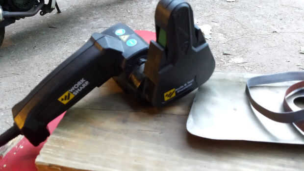 Afilado de la izquierda a capaces manos/preformado guías de plástico de mi pequeño cinturón lijadora-herramienta de mano. Tiene cinturones de gruesos, medio y finos, y solo usarlos en orden, como puedo sentir agradable rebabas en el borde entero con mi uña de la conmutación. Una vez que completa, usé unos guantes de cuero para strop las rebabas del restante en su lugar.