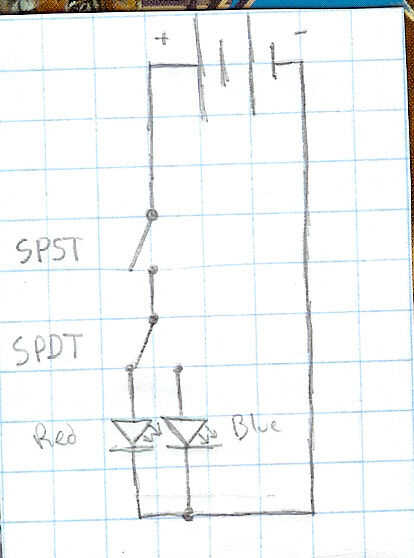 Alambre y soldar todos los componentes eléctricos según el diagrama. Tenga en cuenta que el símbolo de LED en el diagrama significa todos llevó a pares, en paralelo, de un color.
