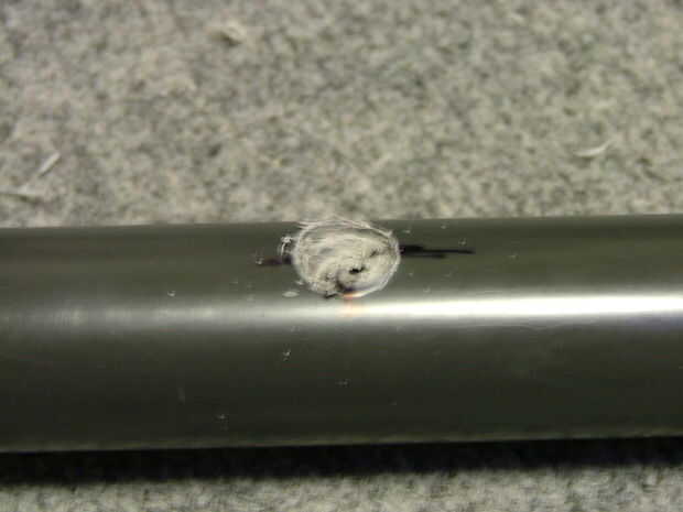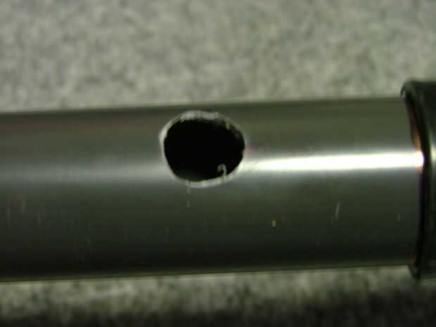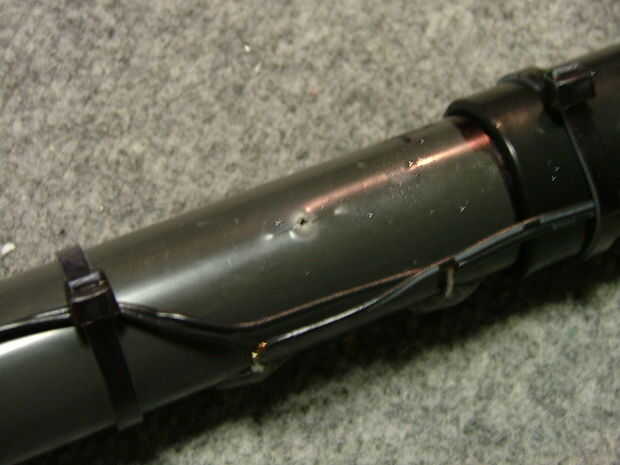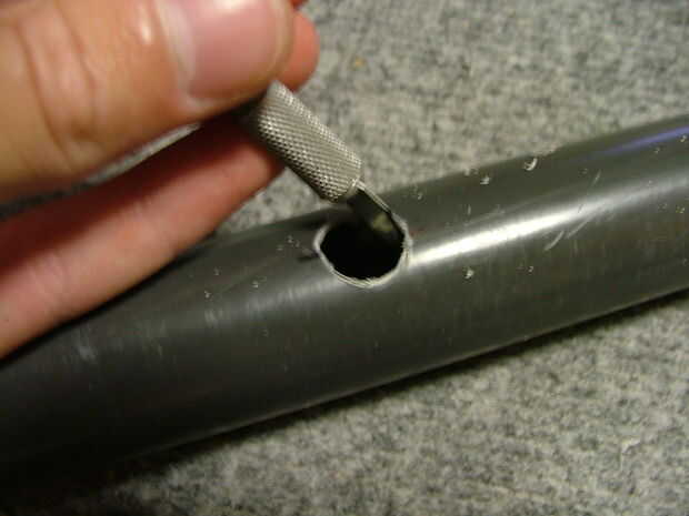 Si, como yo, que utilizó una broca de pala, cuando fue terminado el taladrado, la broca perfora la parte posterior de su tubo, tapa ese agujero con cinta de papel para evitar la niebla escape.