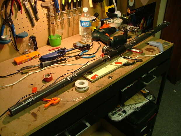 Una vez todos los LED han sido soldados al alambre y pegadas a la pipa, pegamento caliente a la tubería. Sólo viró el LED a la tubería para que pueda quitar y reutilizarlas más tarde si es necesario.