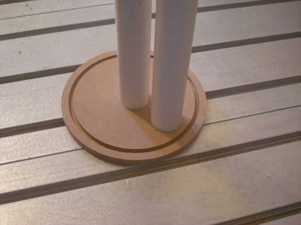 Puede utilizar cualquier material que sea lo suficientemente fuerte para tubo de PVC de soporte. He utilizado 6mm MDF. Necesitará dos orificios para el tubo de PVC que las mangueras se conectan a. Hacer seguro de medida y obtener el espacio adecuado para colocar el tubo elegido.