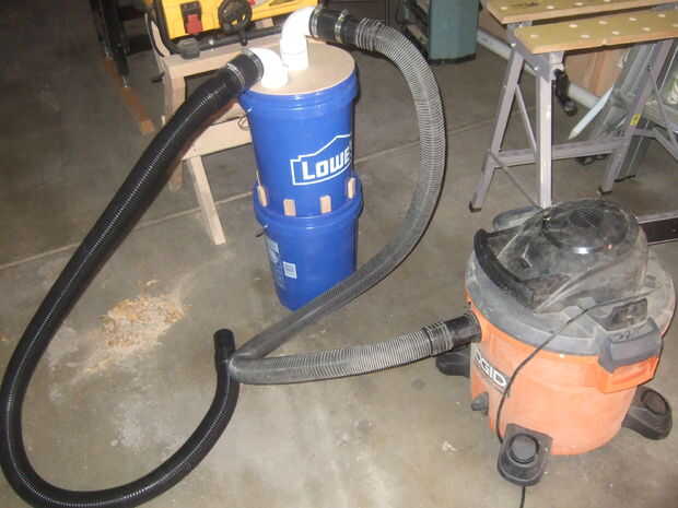 Con mi creciente interés en la madera y la cantidad de polvo crean en el proceso que tenía que encontrar una solución para recoger el polvo creado en mi garaje sin obstruir el filtro de la aspiradora de mi tienda. Hay un montón de soluciones publicadas en la web que varían de compra y montaje de sistemas de separador de polvo disponibles en el mercado para hacer su propio. Aquí les presento la solución se me ocurrió, que como de costumbre se basa en todas las cosas buenas que pude encontrar en la web y luego algunas de mis propias ideas. Me fui para el diseño posible más simple, que resultó para ser capaz de manejar una amplia gama de máquinas y espejo de polvo volúmenes con 'Versión 2'.