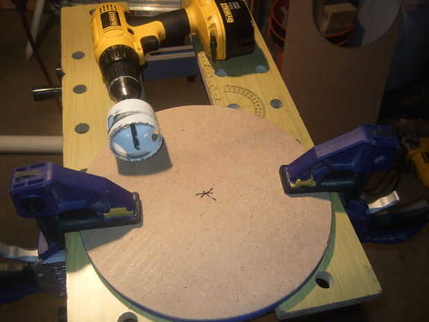 - Perfore un orificio de segunda con 2 1/2" agujero Sierra para que eso fuera el agujero está en la marca.