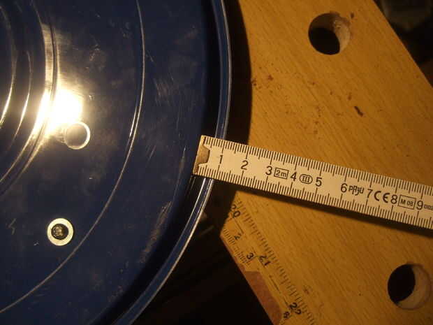 - Mida la distancia desde fuera del tapa/cubo para interior de la tapa/del cubo. Esto fue 1 cm en mi caso.
