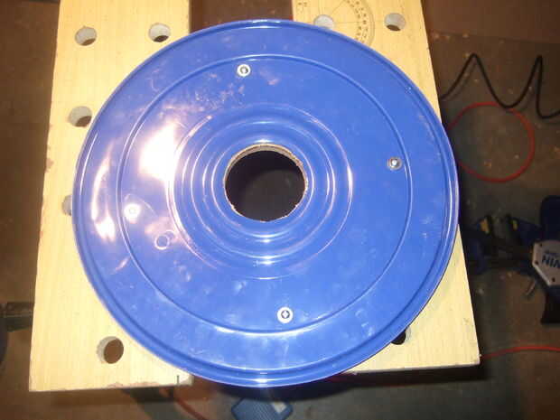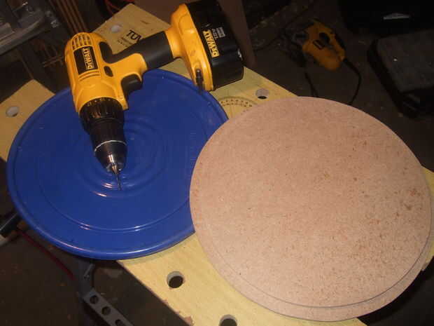 - Coloque el disco de madera más pequeño en la parte superior de la tapa del cubo.