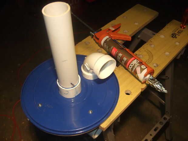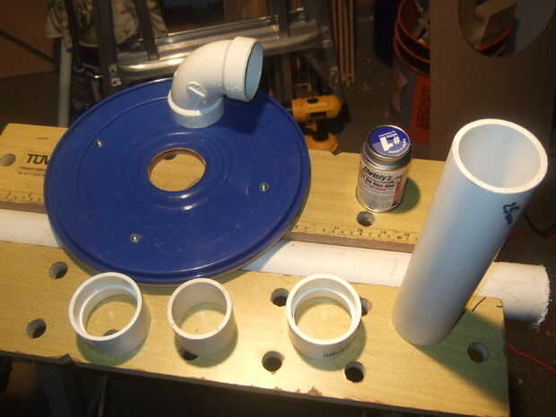 En este paso estamos montando los tubos de PVC en la parte superior de la canastilla de separador de polvo. Nota Este 2" tubería tiene un diámetro interior de 2".