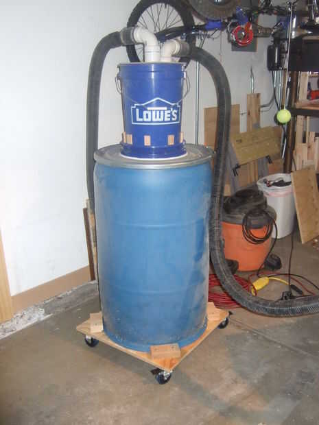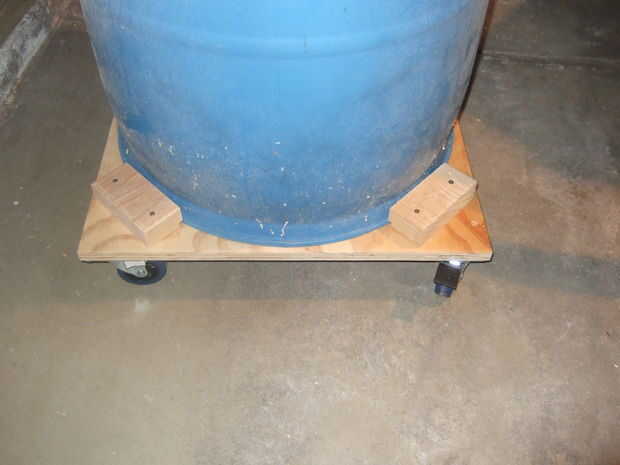 Después de algún tiempo de utilizar con éxito el tambor como un separador de polvo seguí un Consejo amistoso y agregó las ruedas a la instalación. Aunque el tambor nunca realmente consiguió como pesado como yo pensaba, las ruedas seguro que sería mucho más fácil de moverse la configuración.