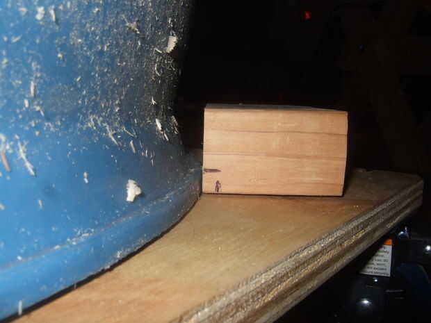 - Coloque los trozos de madera (i) con la ranura hacia abajo y (ii) la ranura hacia el tambor en las cuatro esquinas de la madera contrachapada.