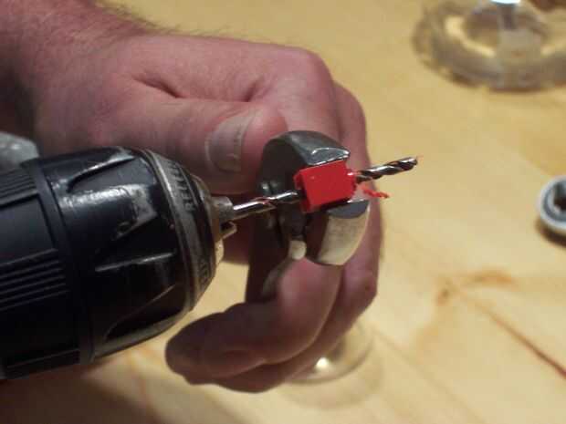 (1) Sujete el ladrillo con un par de pinzas y perfore un agujero de 3 mm a través del centro de la entrada de complemento de Lego. Esto funciona mejor usando un taladro de mano y pasando por la parte inferior del ladrillo, donde dejó un agujero preexistente desde el proceso de moldeo deja un pequeño orificio ciego que es perfecto para guiar la broca a través del centro del poste del resorte (Figura 1).