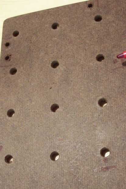 (4) Utilice su mejor juicio, perfore los agujeros donde las marcas indican el centro de cada cilindro se encuentra. Utilice un taladro un poco más grande que 3 mm para permitir un margen de ajuste en la posición final.