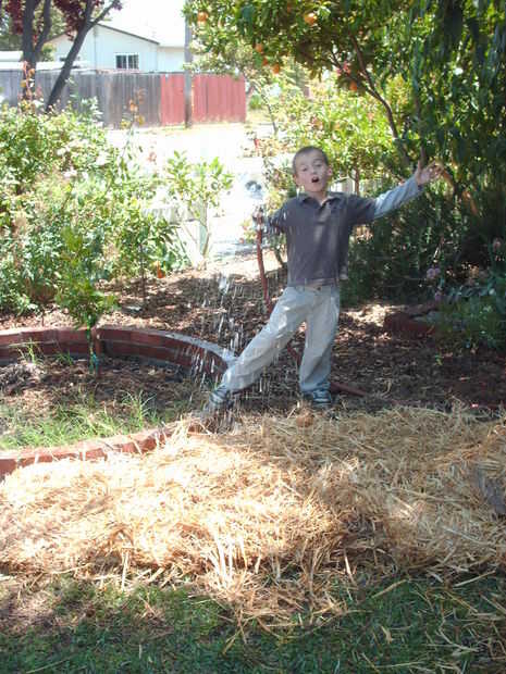Cuando haya terminado con su franja, la paja de agua. Conseguir mojado. Está comenzando el proceso de descomposición con el riego.
