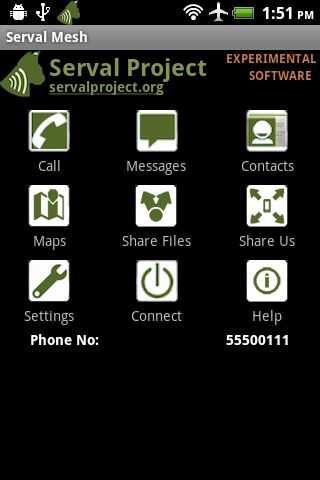 Serval de malla es un gran servicio a la llamada y el texto. Cuando se utiliza malla de serval no necesita ninguna conexión a internet y funciona muy bien. La interfaz no es la mejor, pero es una aplicación sólida.