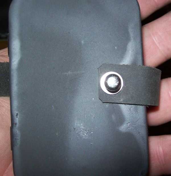 Cortar una cinta para el cierre, perforando un agujero cerca del final. Usando el "roscados" de la yeguada de botón, ir desde el interior hacia el exterior, por lo que el tornillo que sobresale de la parte delantera. Coloque el agujero sobre el tornillo y el extremo con botón del perno en el tornillo. Apriete todo sólidamente.
