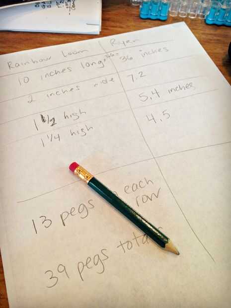Mida cuidadosamente el telar y la persona que va ser vestir el traje para calcular las medidas proporcionadas.  Utilizar la altura para determinar un "multiplicador" entre la altura del telar y altura del usuario.  Nuestro telar mide 10 pulgadas de largo.  Queríamos que el traje que aproximadamente 36 pulgadas para Ryan por lo que utiliza un multiplicador de 3.6.