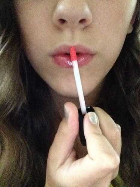 Poner en algún brillo de labios o lápiz labial. Prefiero lipgloss porque lápiz labial hace que mis labios secos.