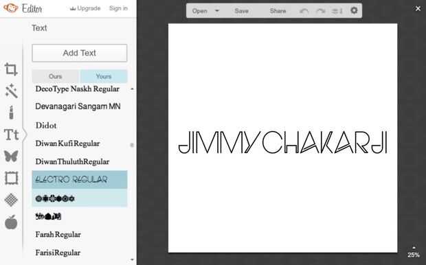 El "suyo" tab en el texto herramienta permite usted uso fuentes que has instalado de gratis y premium fuente sitios web