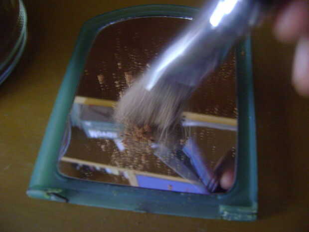 Polvo el polvo de la huella digital con la ayuda de un cepillo suave. (Evitar demasiado contacto de la escobilla con la pieza de vidrio donde la huella digital está presente. Esto ayudaría a levantar una buena huella.