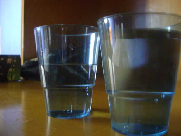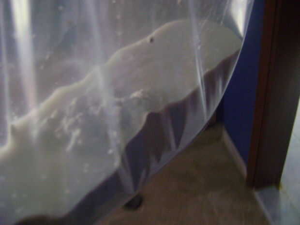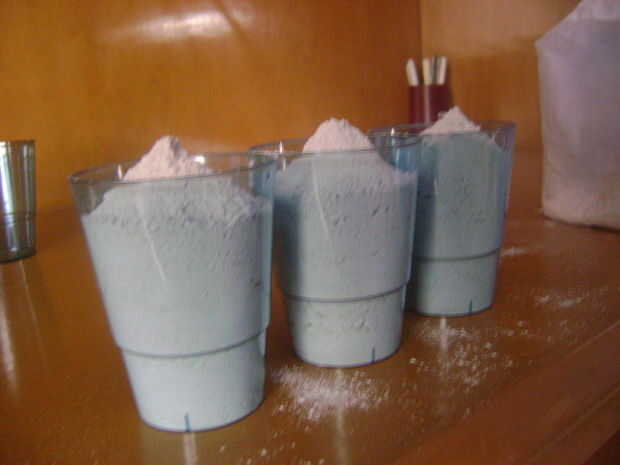 Mide 1.5-2 tazas de agua en un vaso desechable de plástico y añadir a la bolsa de Ziploc. A continuación, agregue 3 tazas desechables de yeso de París a la bolsa de Ziploc. Vierta el agua primero y luego yeso de París como la mezcla se calienta si lo haces al revés. Reacción exotérmica :)