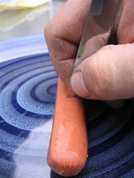 Todo el mundo sabe que cuando cocina un perrito caliente, se hincha para arriba. Bastante hinchazón y fracturas abiertas. Podemos controlar estas divisiones haciendo nuestras propias cortes a través de la piel.