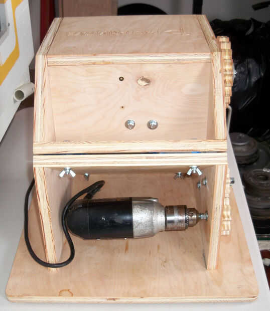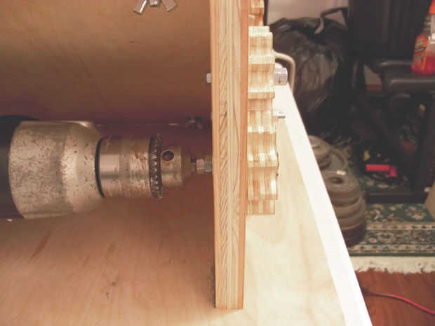 Equipo adicional necesario- Tuve que añadir otro engranaje de diente 10 para montar el taladro en el interior de la máquina y el taladro de poder girar en sentido horario estándar. Si no agrego el engranaje adicional le gire el engranaje de 1 diente en la dirección equivocada para avanzar en el engranaje de trinquetes. También quería correr en sentido contrario. Algunos taladros parecen no proporcionar bastante tanta velocidad en el reverso.