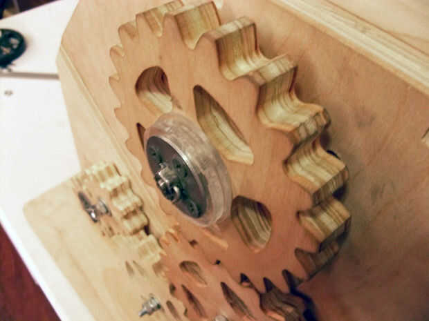 Cam (en axel de engranaje de un diente)- Necesitaba para deshacerse de la cam que fue responsable de empujar la palanca del trinquete del camino porque no presté atención al hecho de diámetro mayor en la leva causaría la leva para puesto de en el eje de engranaje por encima de él. Afortunadamente eso leva resultó redundante e innecesaria.Un engranaje de diente- El engranaje de un diente responsable de avanzar en el engranaje de trinquetes era capaz de avanzar en el engranaje de trinquetes sin desunir el brazo trinquete. Había hacer el un diente un diente un poco más largo de engranaje para avanzar en el engranaje de trinquetes lo suficiente para el brazo de trinquete embragar completamente.