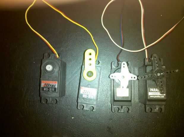 4 x 100 ohm resistencias (1 para cada servo. Estos se utilizan para limitar la corriente. A 3,3 v la resistencia limita la cantidad de corriente a través del microprocesador en 3.3ma si se comprueba que una carga de baja impedancia)