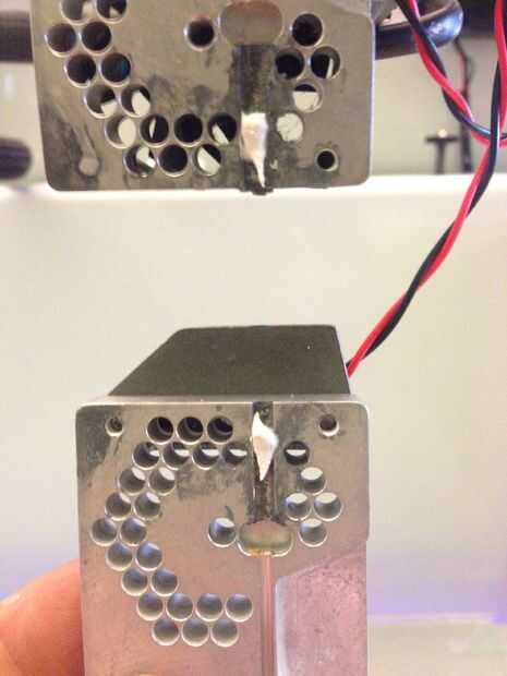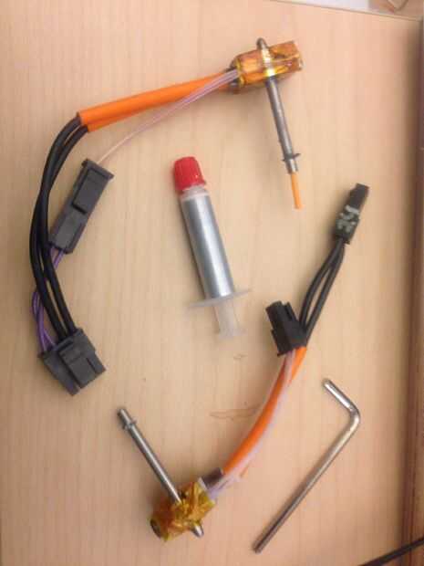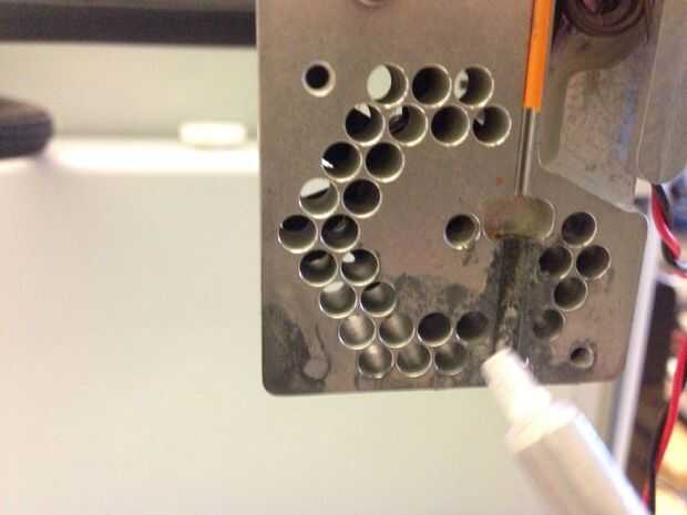 Aplicar un dap pequeños de grasa térmica en el interior del canal caliente extremo en ambos lados de la abrazadera del extremo caliente.