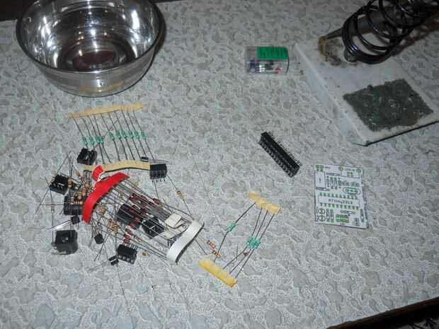En primer lugar de la soldadura de la resistencia y diodos zener y transistor, luego zócalo del ic y en la última vendió el puerto db-9.